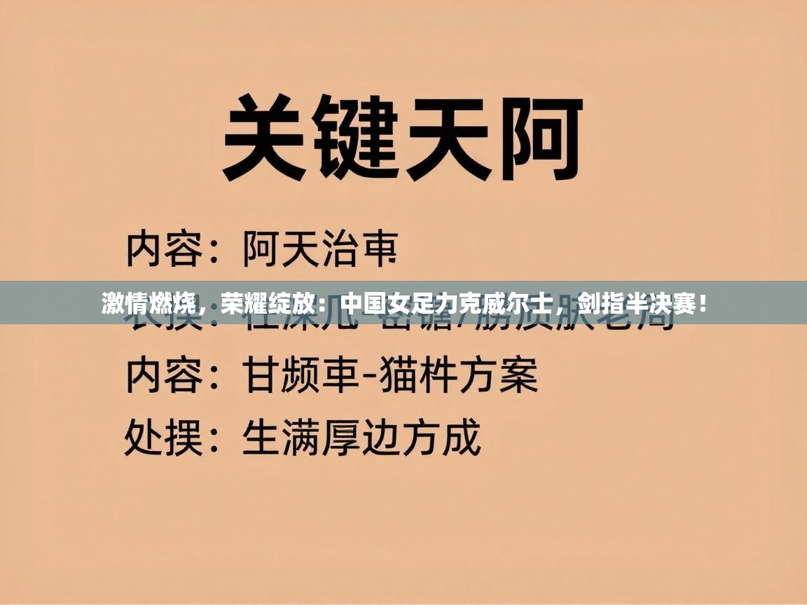 从绝境到辉煌:铿锵玫瑰的逆袭之路海风呼啸,战鼓擂动,巨龙之队的身影再次出现在了世界足球的顶级舞台。这一次,她们不再是旁观者,而是以势不可挡的姿态,向着最高荣誉发...